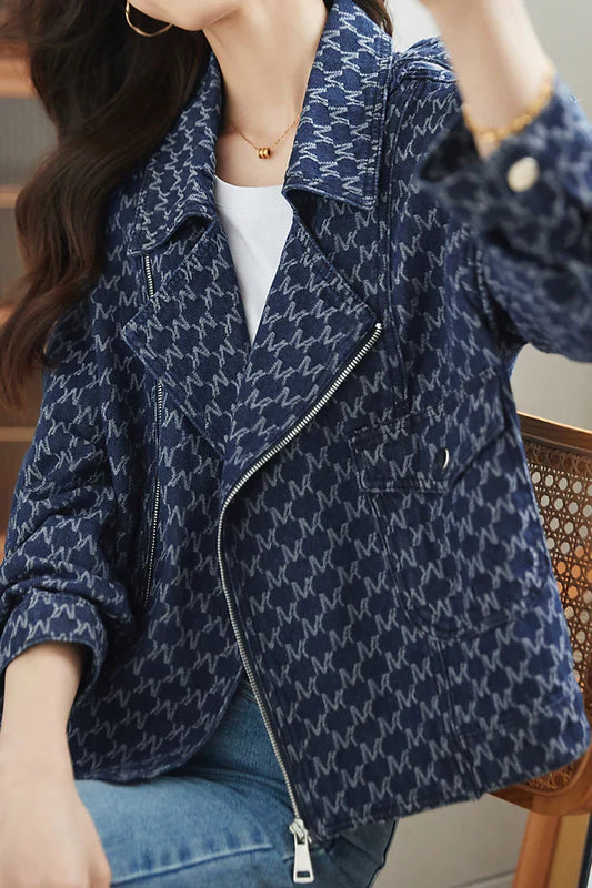 Lucy - Denim Rider jacket with stand-up collar
